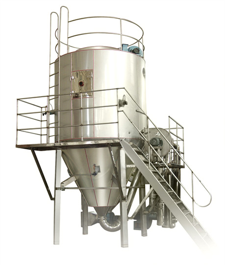 Most of herbal extracted material contains lots of sugar which brings big difficulties for spray drying process.Those problems cause by high sugar content material are low powder soften point , easily stick on inner tower , easily agglomerationand easily absorb moisture when expose to air. If use normal spray dryer without special design, these problems will be caused : a lot of powder stick on inner chamber ,and powder coking phenomenon , moreover powder in collecting tank under cyclone will agglomerate because of overheated after long period .